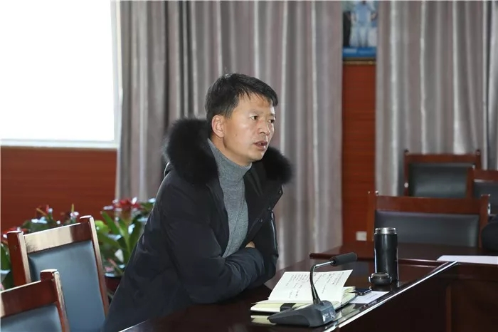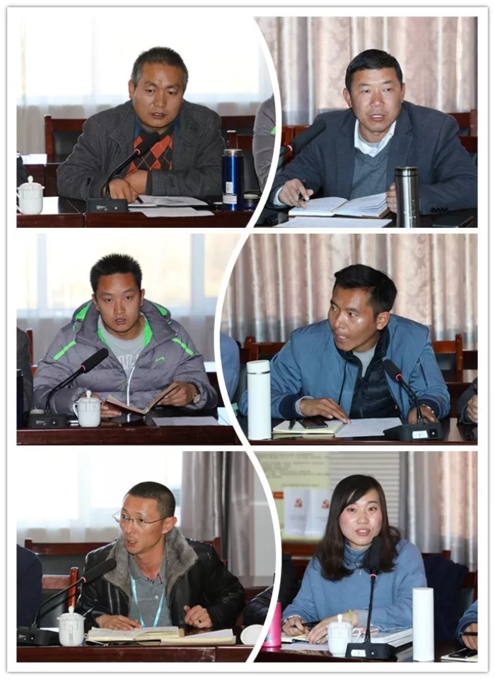 各負(fù)責(zé)人會上作說明·多杰太(左一) 、田鵬(右一)、羅布次仁(左二)、許鵬杰(右二)、李紀(jì)偉(左三)、李麗(右三)