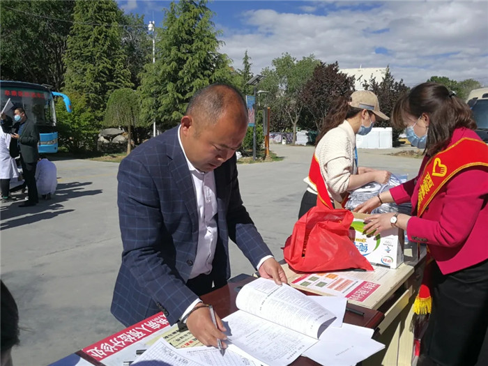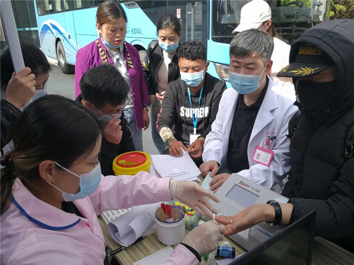 六月九日上午十點,西藏自治區(qū)血液中心的兩輛大巴開進了阜康體檢中心的大院。早已等候在此獻血的阜康員工,身影開始躍動。