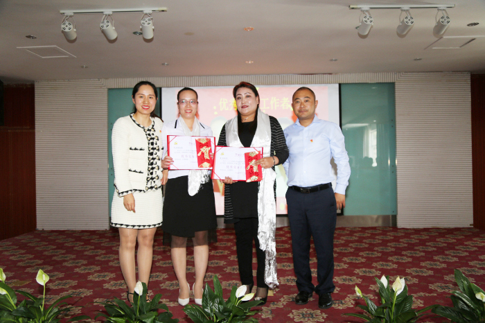 牛亞青、張政、雷羊州、劉秀等同志獲得"優(yōu)秀共產(chǎn)黨員”稱號,何文秀同志、索珍同志獲得"優(yōu)秀黨務(wù)工作者”稱號,義診組黨小組獲得"優(yōu)秀黨小組”榮譽,阜康"老兵之家”支部委員會、中共西藏阜康藥店聯(lián)合支部委員會獲得"先進基層黨組織”榮譽。陳彬、何文秀、劉秀、李映、李燕科、江潤霞、孫自豪等7位同志獲得阜康雪域天使志愿者服務(wù)隊 "志愿者之星”。區(qū)黨委組織部四處和公司黨委領(lǐng)導為獲獎人員頒獎。