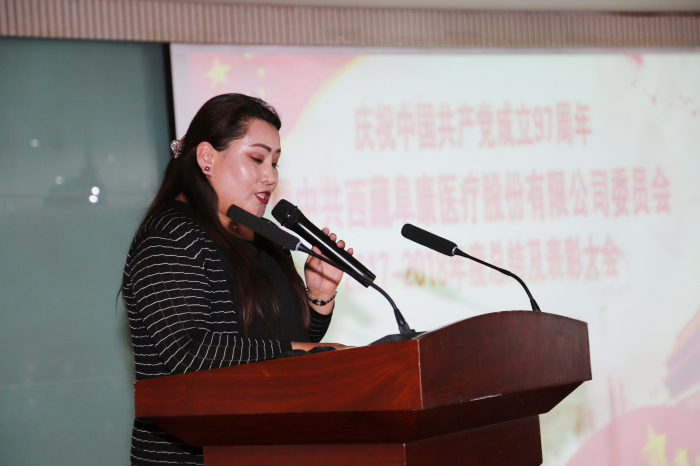 優(yōu)秀黨務(wù)工作者索珍作代表發(fā)言。她由衷感謝公司黨委的信任,表示自己會把這份信任變?yōu)楣ぷ鞯膭恿ΓM一步提高對患者的服務(wù)能力和水平,為醫(yī)院的發(fā)展貢獻自己的力量,不辱一個新時代共產(chǎn)黨員的光榮使命。